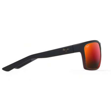 Les lunettes Maui Jim Alenuihaha sont destinées aux visages larges. De couleur bordeaux foncé strié mat, elles sont équipées du verre Hawaï Lava.