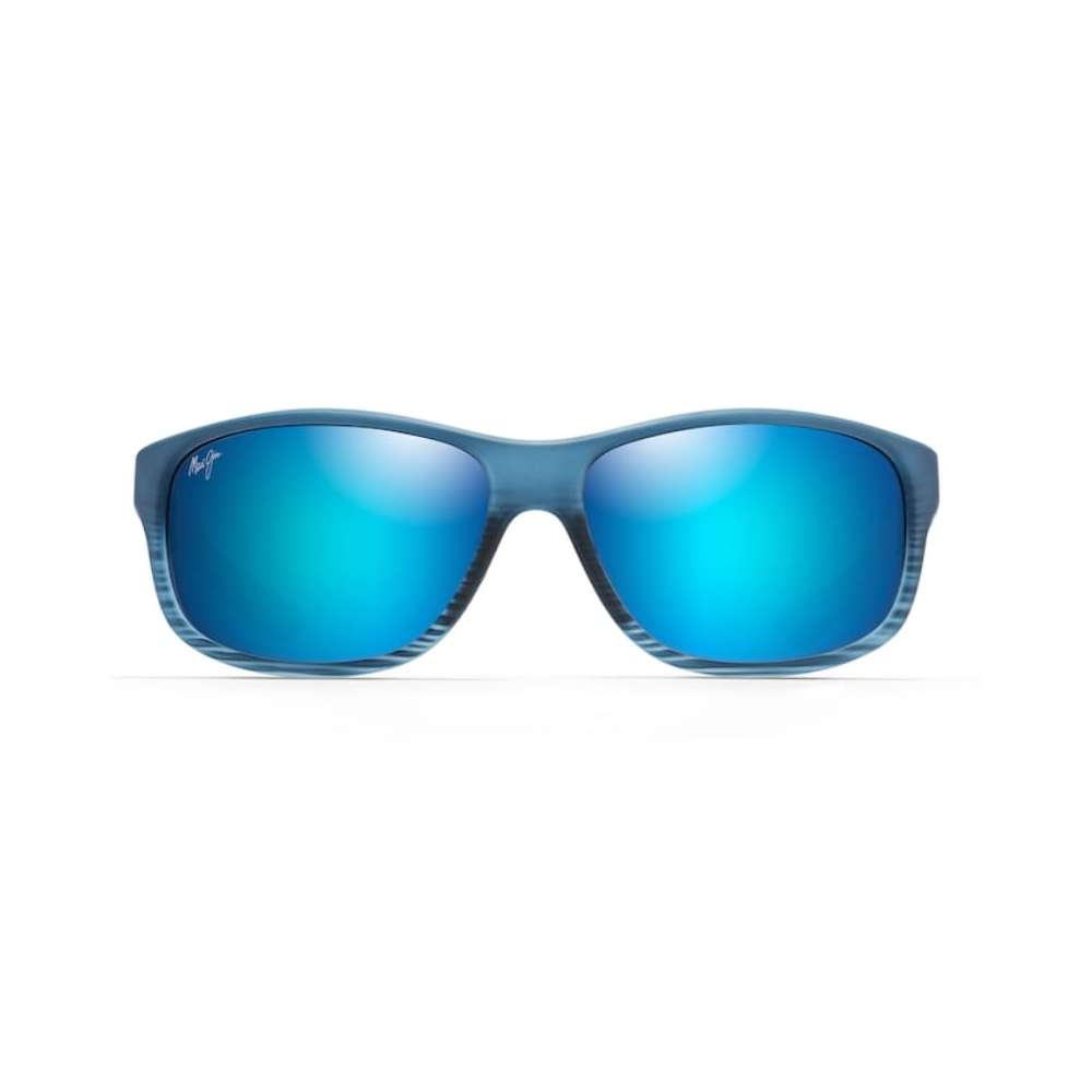 Ce modèle Maui Jim Kaiwi Channel est en matériau injecté de couleur Bleu mat avec des striures noires, il est équipé de verres minéraux polarisés Blue Hawaï