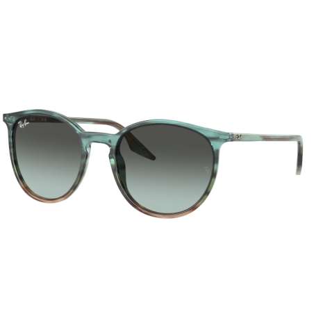 Ce modèle Ray Ban RB2204 est en acétate de couleur Rayé bleu et vert et ses optiques sont en verres minéraux dégradés noir sur bleu